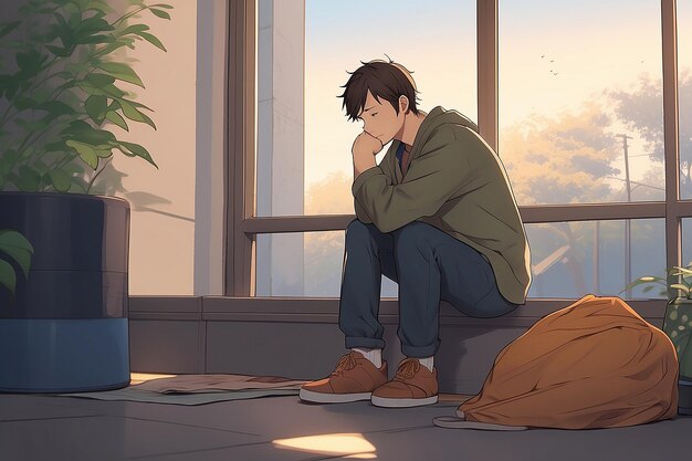 1/13/2025 4:58 PM 404742 A_Young_Man_Holding_A_Flower_Sitting_Alone.avif
